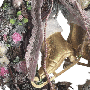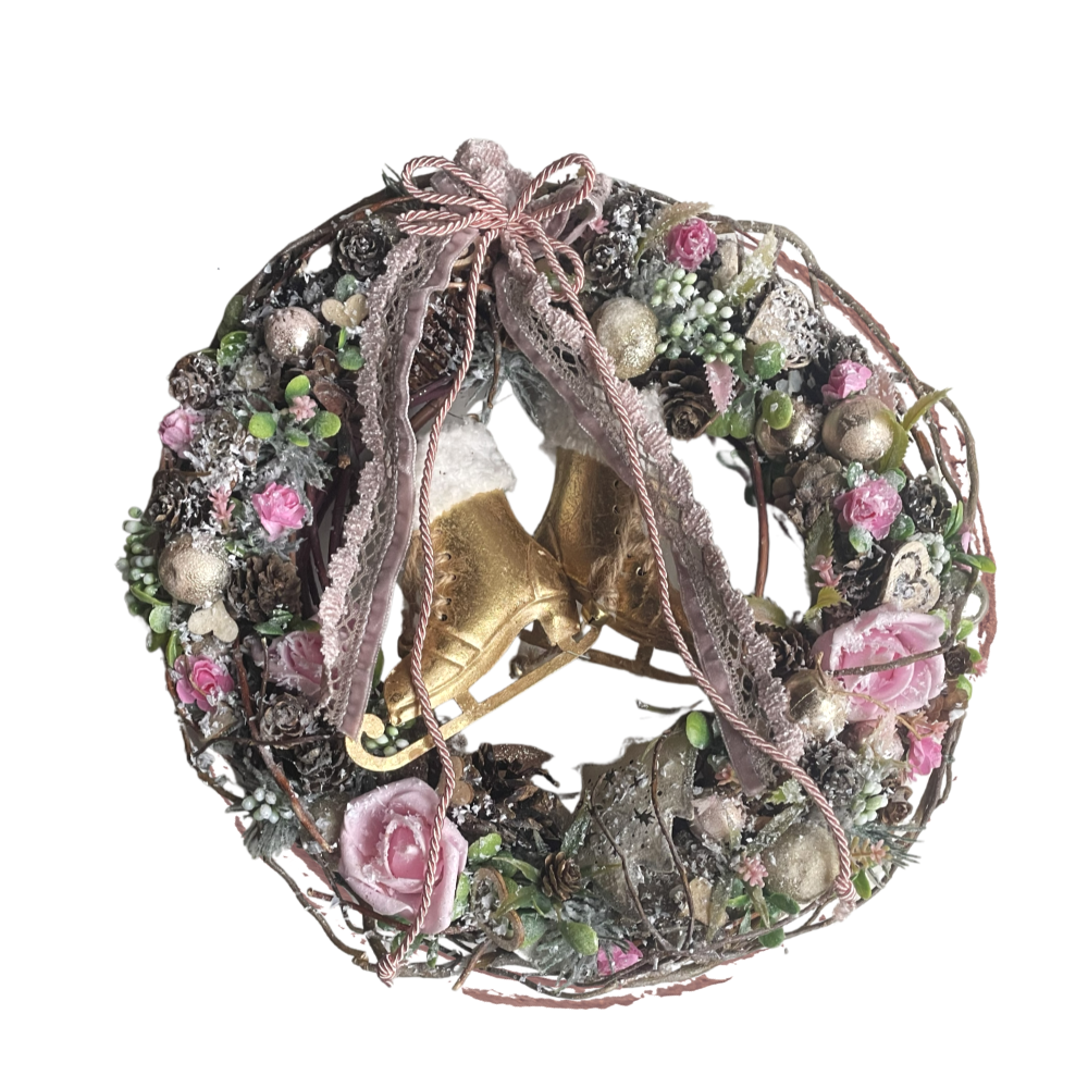 Romantiline Kuldsed Uisud pärg muudab iga ukse talvise muinasjutu väravaks.