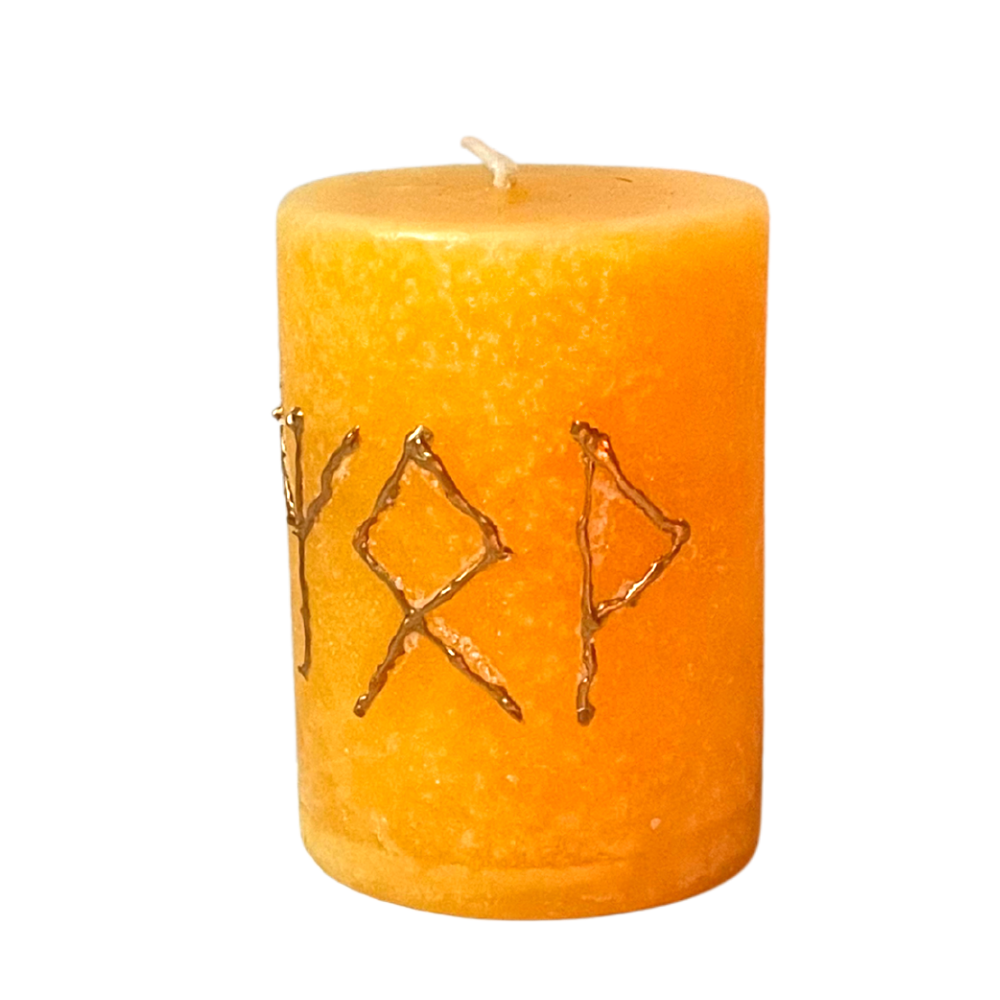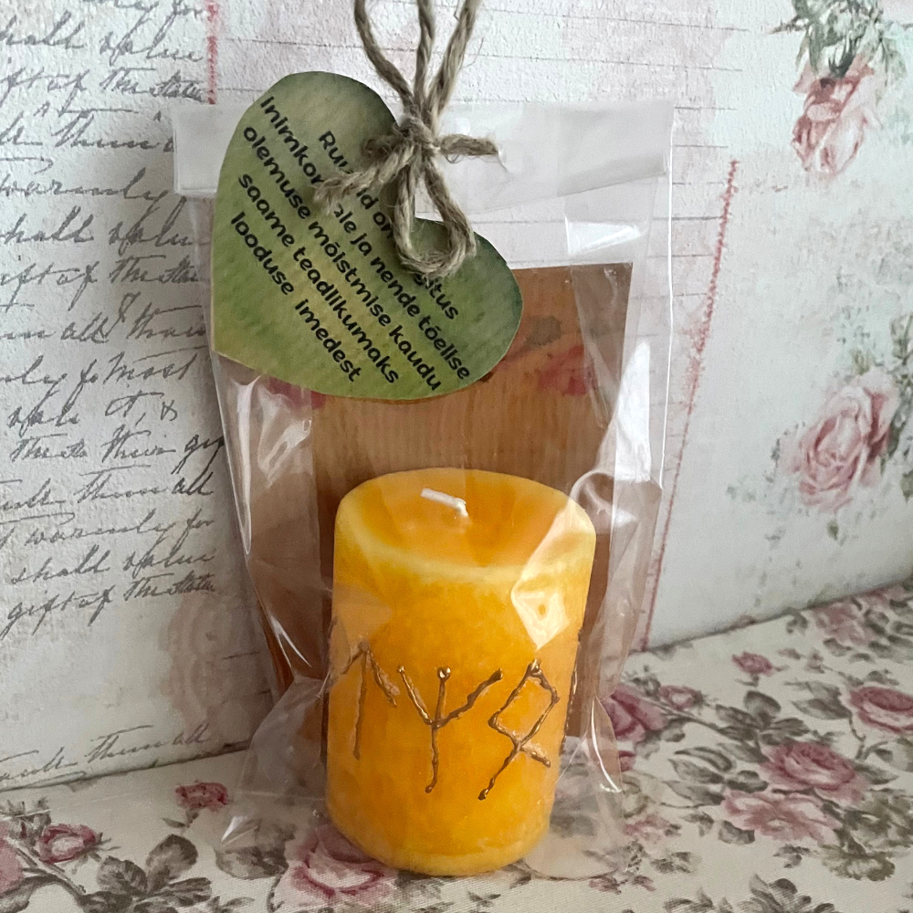 🕯️ Terviseküünal “Elujõud” – ruunide vägi, kuldkollane valgus ja sisemine tasakaal